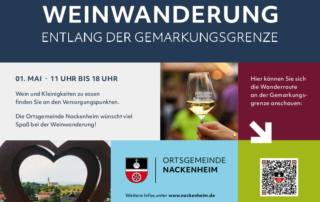 Zusammen gehts besser! Die Ortsgemeinde Nackenheim veranstaltet am 1. Mai 2026 in Zusammenarbeit mit den ortsansässigen Winzerinnen und Winzer erneut die Weinwanderung entlang der Nackenheimer Gemarkungsgrenze! Alle Teilnehmenden sind eingeladen, die wahre Größe unserer schönen [...]